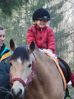 Heilpädagogisches Reiten: Wir bieten bei Bedarf heilpädagogisches Reiten auf zur Einrichtung gehörenden Ponys und Pferden an. In Einzel, als auch Gruppenstunden können Mütter und Kinder ab 2 Jahren gemeinsam Pferd und Natur erleben. Das heilpädagogische Reiten ist u.a. förderlich zum Beziehungsaufbau, bei mangelnder Selbst- und Fremdwahrnehmung, psychischen Entwicklungsdefiziten, motorischen Entwicklungsverzögerungen und Auffälligkeiten im Sozialverhalten.